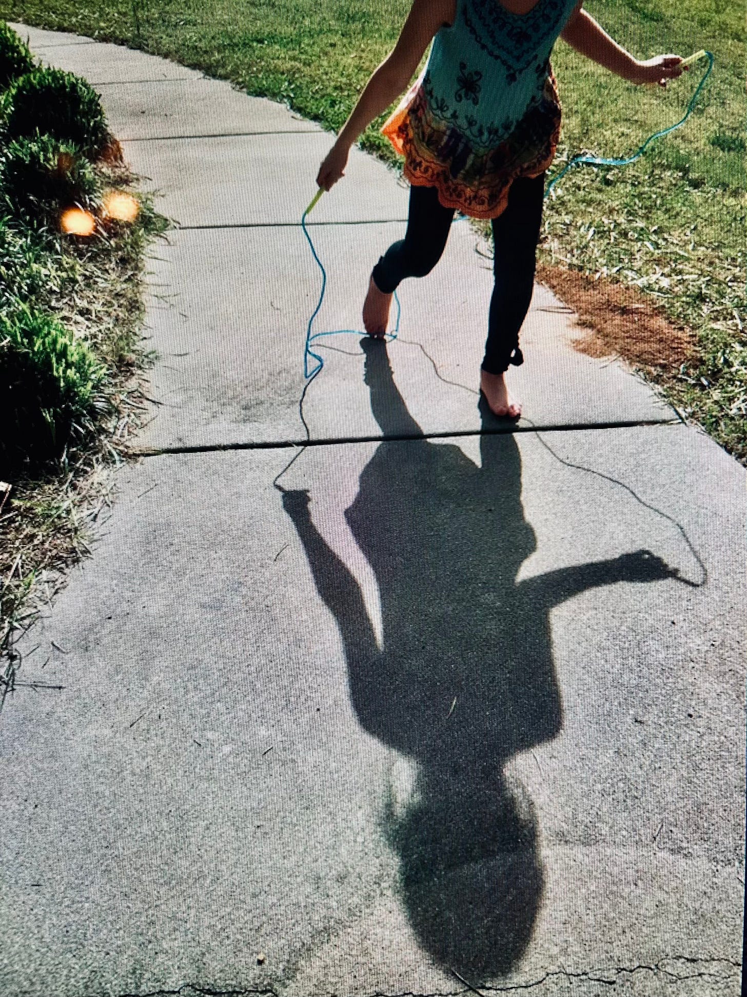 I imagine each of their shadows, delicate and bold in the forward motion of growth, a halo of light illuminating them. I think of my youngest right now in this current moment, knowing the pendulum of time is swinging like her ponytail still does when she’s on the soccer field. I am watching her, even when she prefers that I glance away. I am preparing her for the days when the rope feels heavy and out of control. Sometimes that seems like a struggle, and we’re both pulling on opposite ends. I am ready, however, to capture more moments, and I’m hoping we can take turns jumping through this life side-by-side, double Dutch-style, for another couple of years at least.